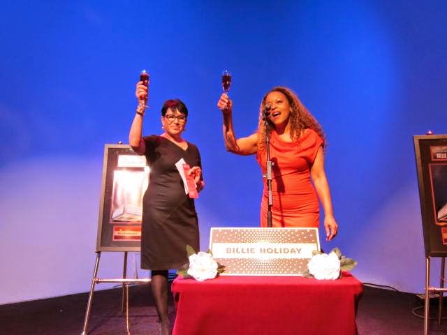 The Apollo Theater executive producer Mikki Shepard and Cassandra Wilson lead a toast to Billie Holiday in the Mainstage venue afer the singer's Walk of Fame induction ceremony. Photo by Karmyn Caraballo.The second reason eschewing a full-on BH imitation shows good sense is because the songs are classics, known to many and sundry. An imitator leaves herself open to unfavorable comparisons. One is hardpressed, though, to find comparisons between “Coming Forth by Day” and any other. CW still adheres to the M-Base Collective best practice of often thrusting instruments to the foreground and pushing voice to the background.